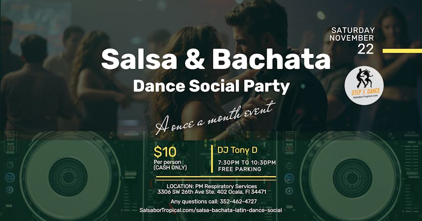 7:30 pm - 10:30 pm - Salsa & Bachata Social Dance Party
